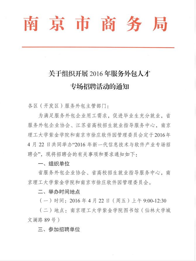 關(guān)于組織開展2016年服務(wù)外包人才專場招聘活動的通知