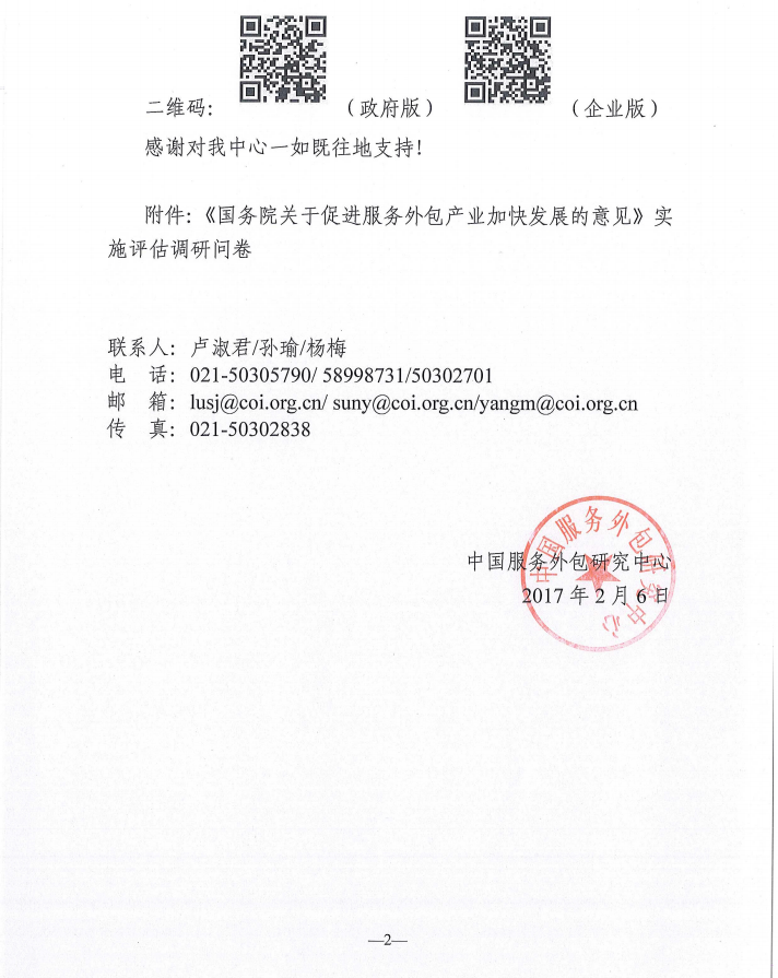 關(guān)于開展服務外包相關(guān)政策評估調(diào)研的函